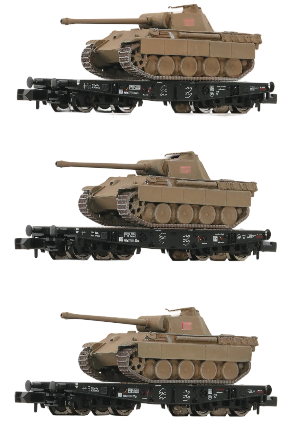 SET DE 3 WAGONS PORTES CHARS DRB ET 3 CHARS PANTHER ARTITEC