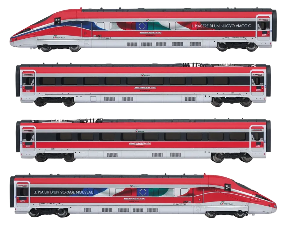 ENSEMBLE DE 4 ELEMENTS FRECCIAROSSA 1000 LE PLAISIR D'UN VOYAGE NOUVEAU FS TRENITALIA