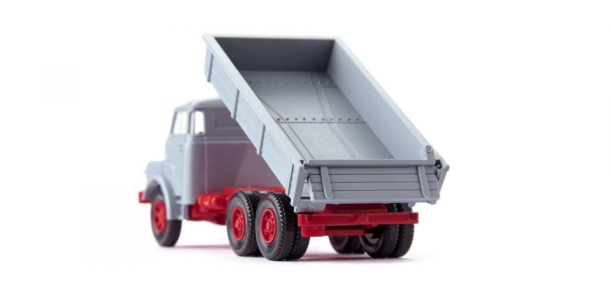 CAMION MAN 3 ESSIEUX PORTEUR BENNE CHANTIER GRIS CLAIR CHASSI ROUGE 1969-94