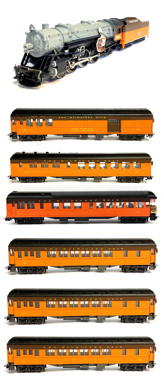 RAME DE 7 ELEMENTS - LOCOMOTIVE A VAPEUR4-6-2 HEAVY PACIFIC 6139 THE MILWAUKEE ROAD + VOITURE VOYAGEURS ET FOURGON BAGAGES