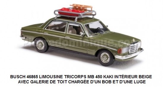 LIMOUSINE TRICORPS MERCEDES BENZ 450 KAKI INTÉRIEUR BEIGE AVEC GALERIE DE TOIT CHARGÉE D'UN BOB ET D'UNE LUGE