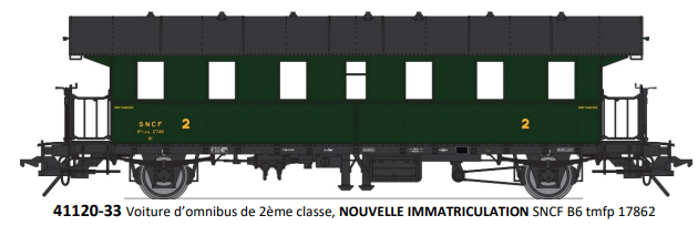 VOITURE VOYAGEURS OMNIBUS B6 1/2 TMFP 17862 2°CL SNCF - (A RESERVER)