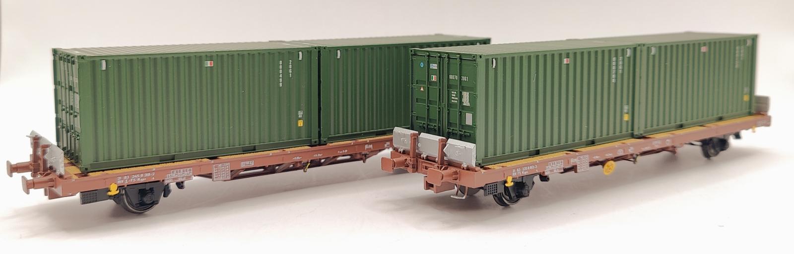 SET DE 2 WAGONS PLATS LAADGRS PORTE VEHICULES DE GRANDES DIMENSIONS VERT ET JAUNE TRENITALIA