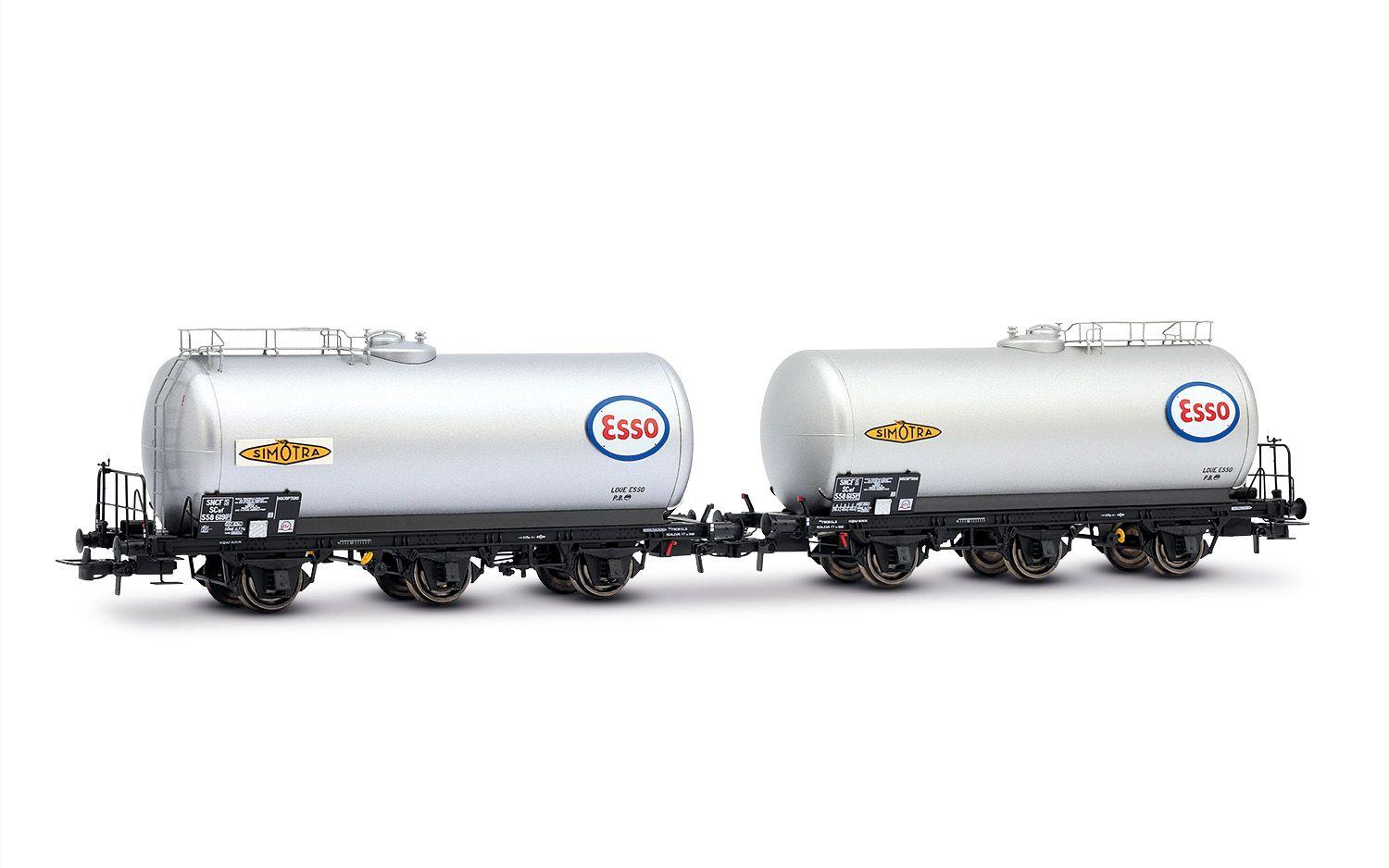 COFFRET DE 2 WAGONS-CITERNES À 3 ESSIEUX ESSO LIVRÉE ARGENTÉE SNCF