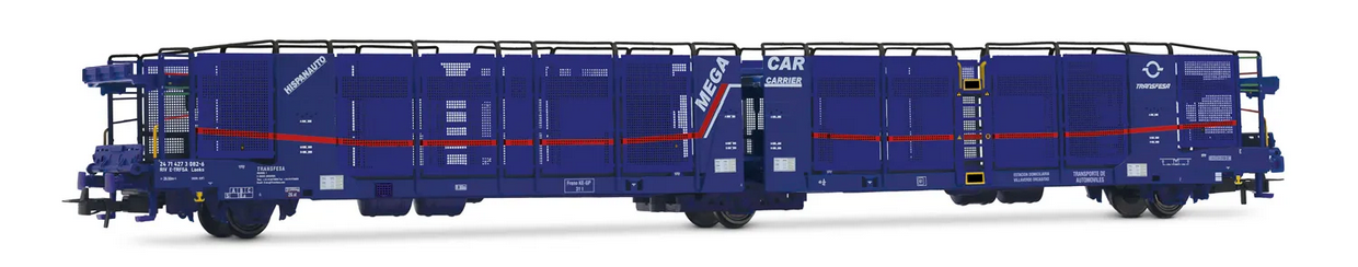 WAGON PORTE-VOITURES TRANSFESA/HISPANAUTO À 3 ESSIEUX LAEKS MEGA CAR CARRIER LIVRÉE BLEUE AVEC NOUVEAU LOGO ÉP VI