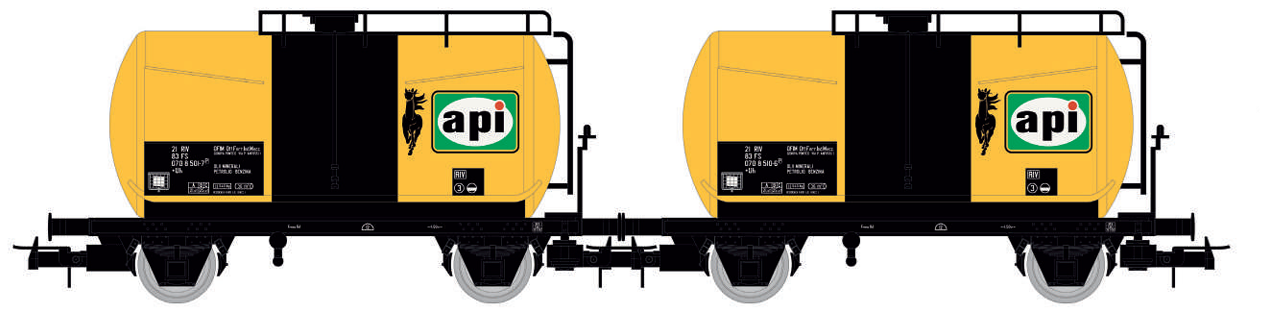 Nos produits > Wagons > RIVAROSSI > SET DE 2 WAGONS CITERNES API FS (A RESERVER)NouveautéA réserverSET DE 2 WAGONS CITERNES API FS (A RESERVER)MarqueRIVAROSSIRéférenceHR6566CatégorieWagonsEchelleHoPaysItalieEpoqueIV3 RailsNon- 11 %72,90 € 64,90 € Acompte de 20 €Quantité Ajouter au panier
