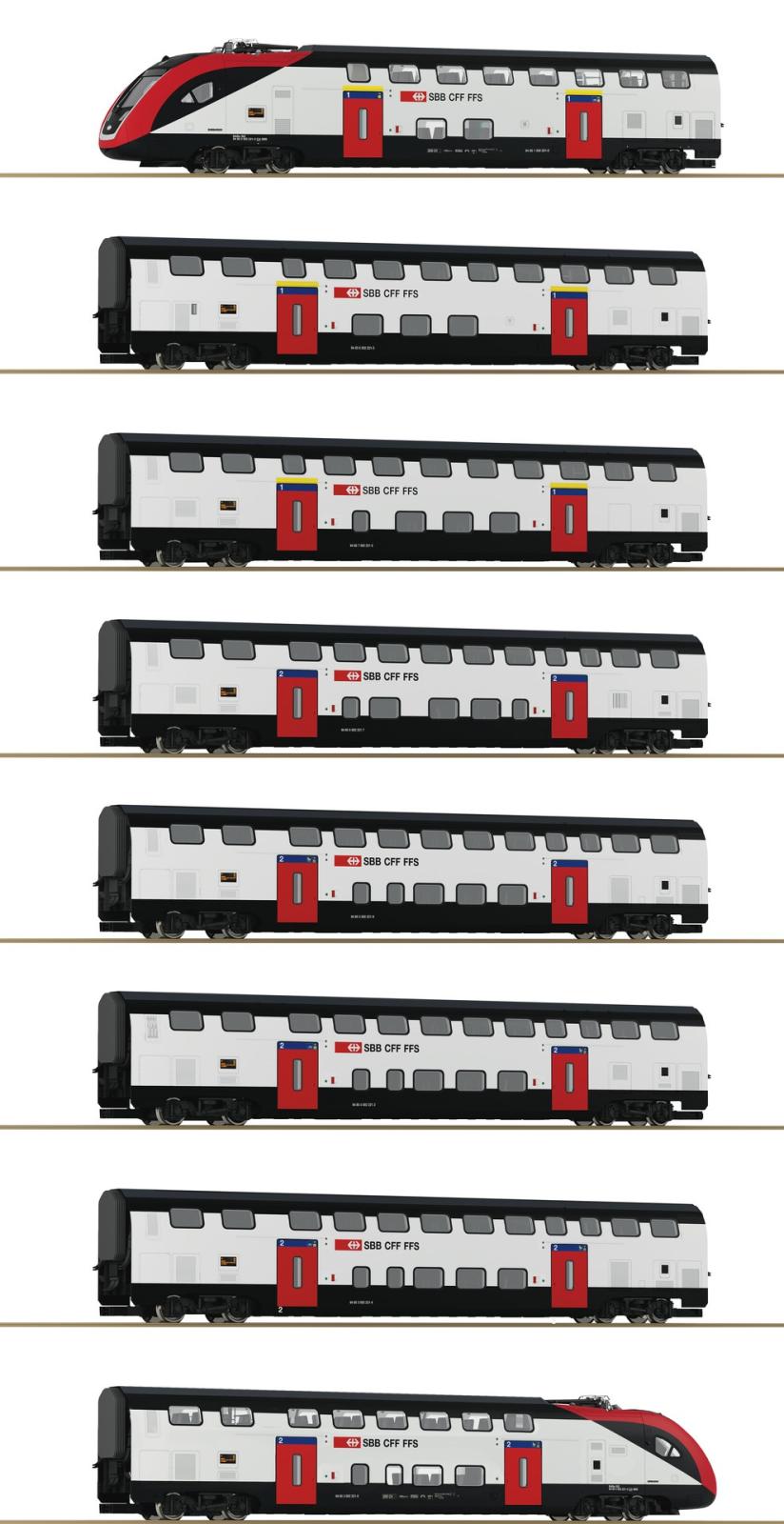 SET 8 PIECES: TRAIN A DEUX NIVEAUX POUR LE TRAFIC LONGUE DISTANCE RABE 502 SBB - DIGITAL SOUND - (A RESERVER)
