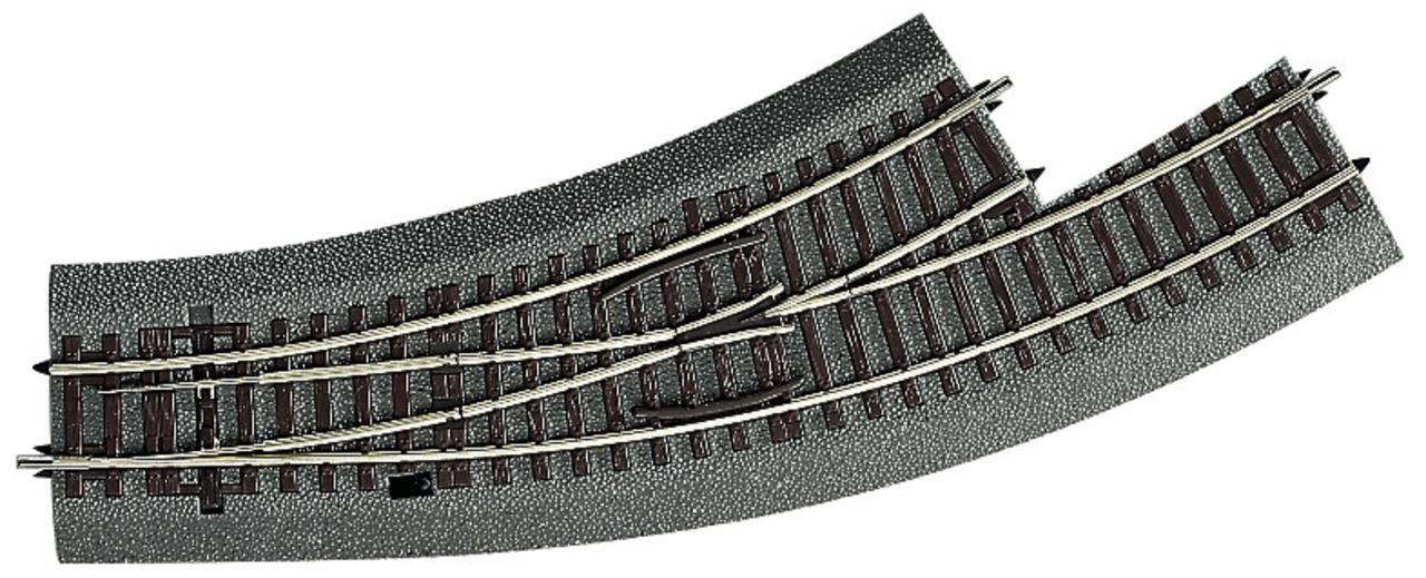 L‘aiguillage en courbe R2/R3 ne convient que de manière limitée pour l‘utilisation de wagons de trains express d‘une longueur à l‘échelle (longueur supérieure à 300 mm) car la distance parallèle dans le secteur du contre-aiguillage est quelque peu réduite et qu‘un passage parfait de deux wagons, qui se rencontrent avec un longueur supérieur à 300 mm, n‘est pas possible.