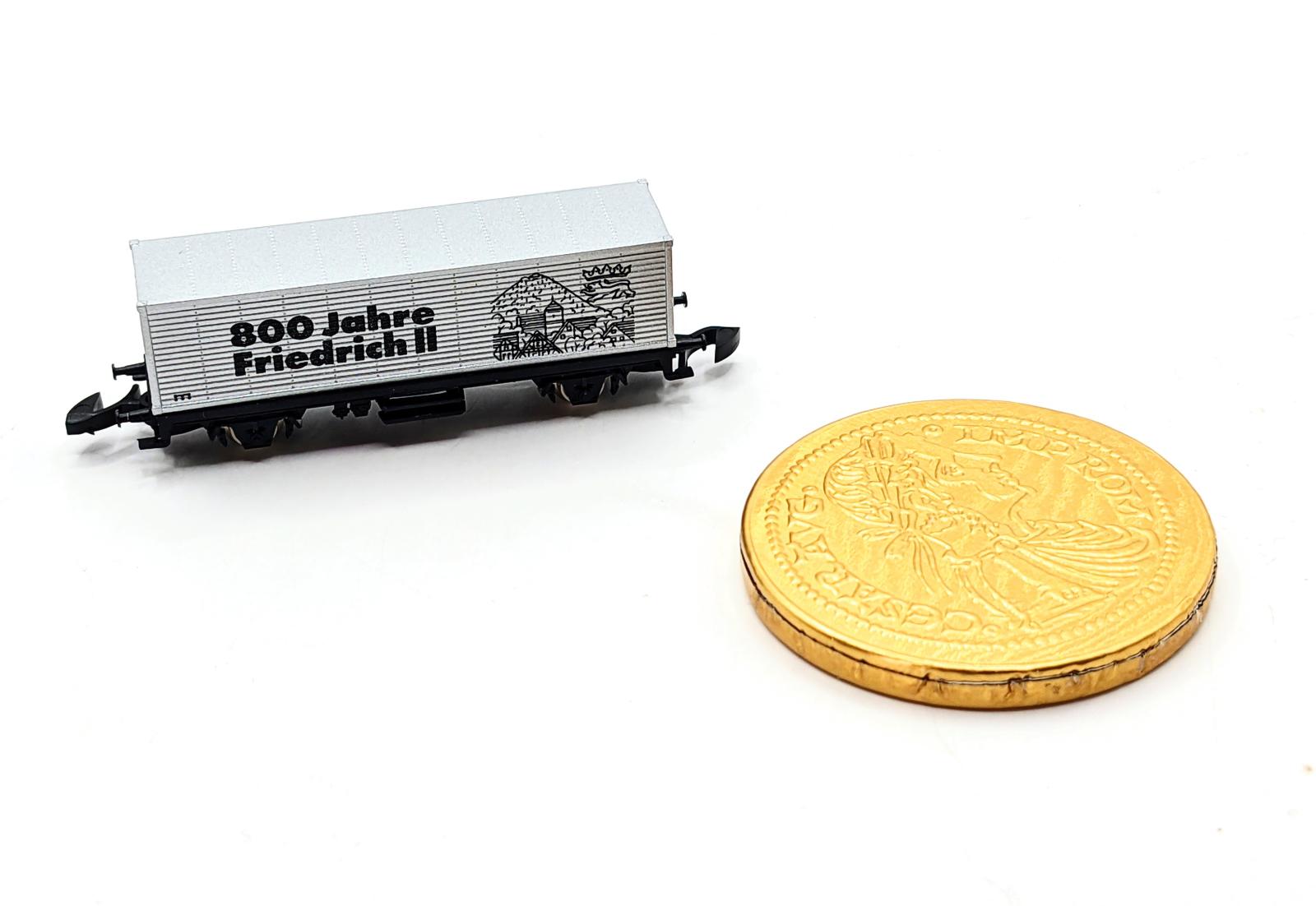 Nos produits > Wagons > MARKLIN > WAGON COUVERT 800 JAHRE FRIEDRICH II AVEC PIECE EN CHOCOLATWAGON COUVERT 800 JAHRE FRIEDRICH II AVEC PIECE EN CHOCOLATMarqueMARKLINRéférence800 JAHRE FRIEDRICHCatégorieWagonsEchelleZPaysAllemagneEpoqueIII - IV3 RailsNon- 51 %45,50 € 22,50 € Quantité Ajouter au panier