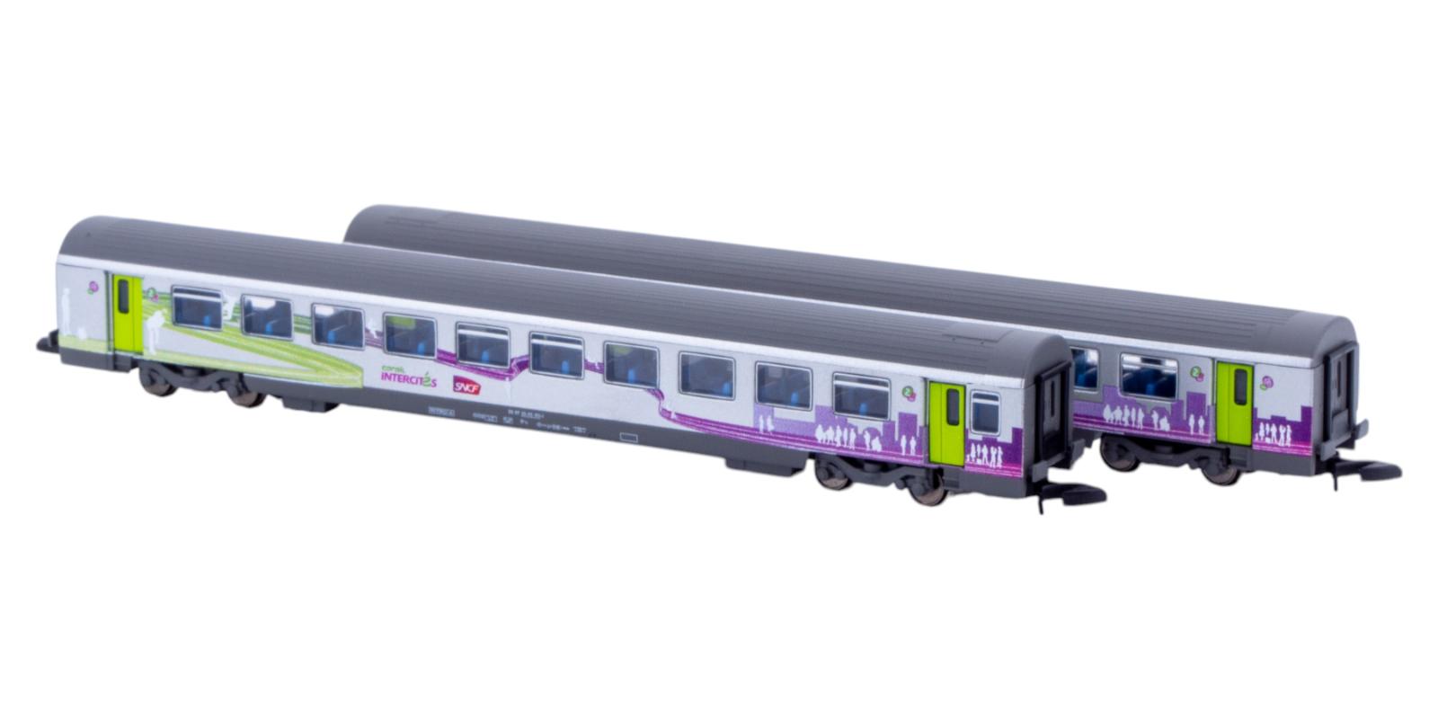 SET DE 2 VOITURES VOYAGEURS CORAIL (1CL+2CL) LIVREE INTERCITÉS SNCF
