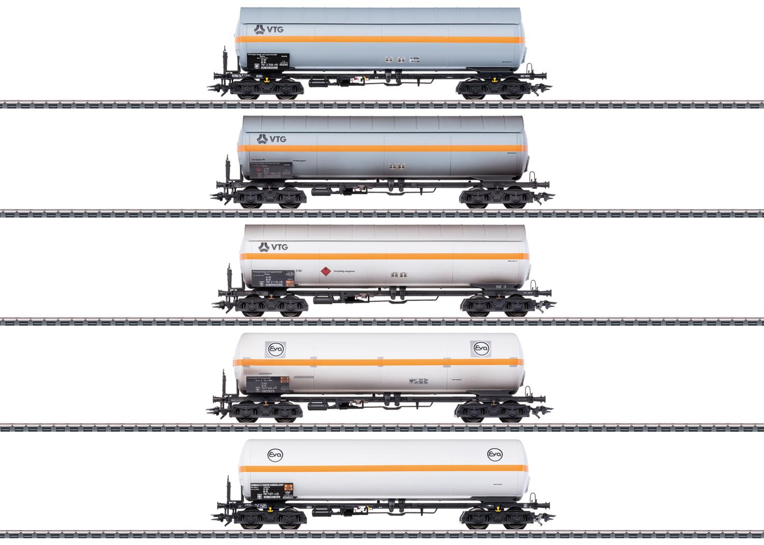 SET DE 5 WAGONS CITERNES POUR LE TRANSPORT DE GAZ SOUS PRESSION VTG ET EVA