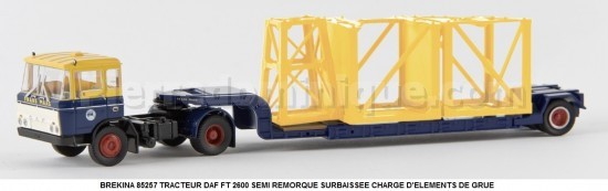 TRACTEUR DAF FT 2600 SEMI REMORQUE SURBAISSEE CHARGE D'ELEMENTS DE GRUE