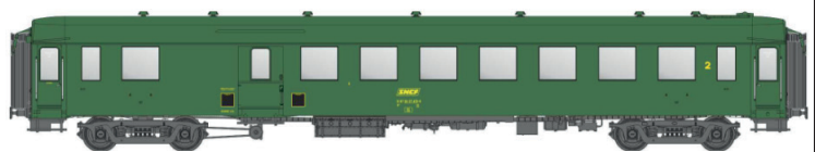 VOITURE VOYAGEURS B5DD OCEM 37 VERT 301 CHASSIS GRIS MARQUAGE UIC LOGO ENCADRE JAUNE SNCF - (A RESERVER)