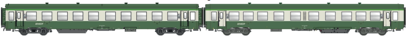 COFFRET DE 2 VOITURES VOYAGEURS USI B10T U60 CAISSE COURTE Y16 BOURRELETS + B10T U63 BOGIES Y24 VERT-GRIS CHAUFFAGE ELECTRIQUE LOGO TALLON SNCF - (A RESERVER)