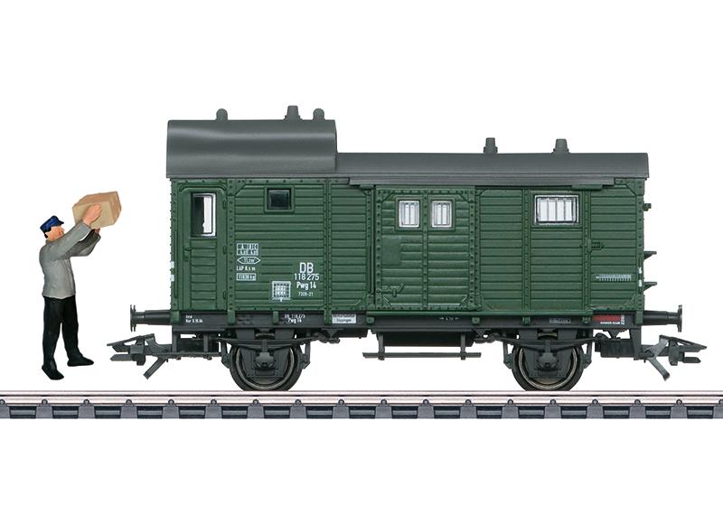 Fourgon à bagages Pwg 14 (Pwg Pr 14) pour trains marchandises, Deutsche Bundesbahn (DB). Livrée vert oxyde de chrome. Etat de service vers 1967/68.