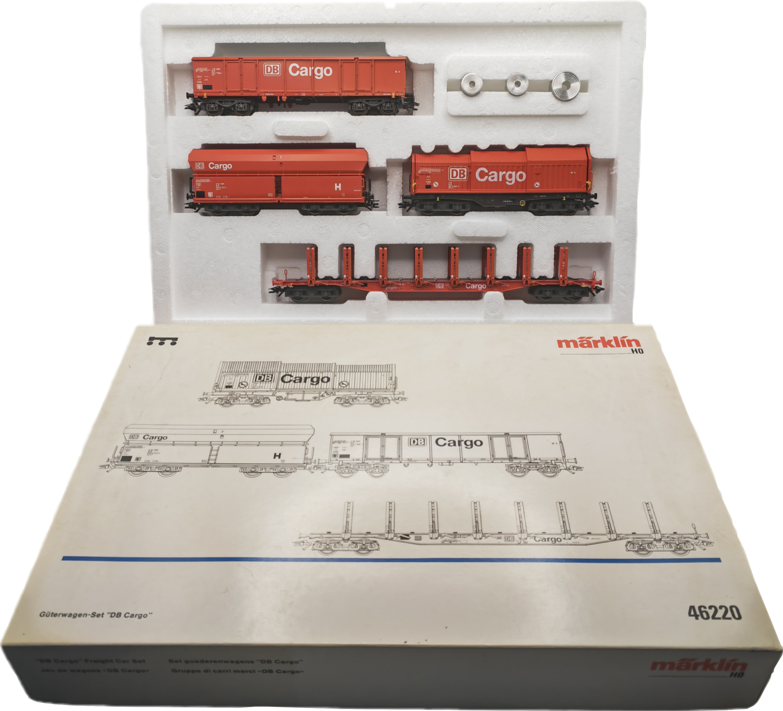 COFFRET DE 4 WAGONS DE MARCHANDISE DB MHI - BOITE TACHETEE