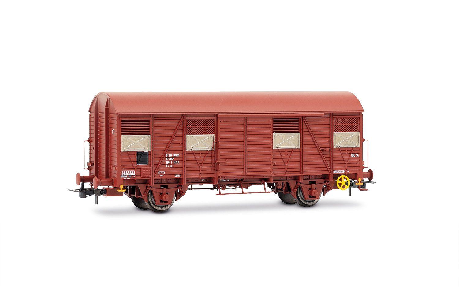 COFFRET DE 2 WAGONS A 2 ESSIEUX TYPE GS LIVRE MARRON AVEC FEUX DE FIN DE CONVOI - (A RESERVER)