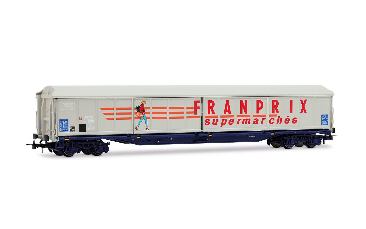 WAGON A PAROIS COULISSANTES A BOGIES TYPE HABIS FRANPRIX LIVREE BEIGE SNCF - (A RESERVER)