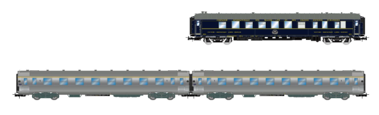 COFFRET DE 3 VOITURES « SUD EXPRESS » VOITURE-SALON CIWL + 2 X DEV INOX COURTES SET 2 SNCF (A RESERVER)
