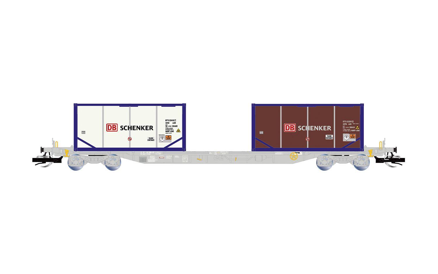 WAGON PORTE-CONTENEURS A 4 ESSIEUX LIVREE GRISE AVEC DEUX CITERNES 20FT DB SCHENKER - (A RESERVER) WAGON PORTE-CONTENEURS A 4 ESSIEUX LIVREE GRISE AVEC DEUX CITERNES 20FT DB SCHENKER - (A RESERVER)