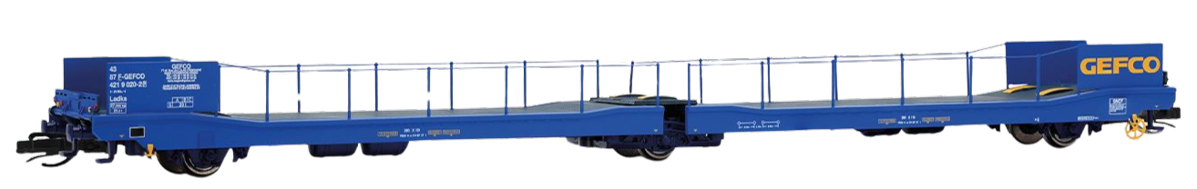 WAGON PORTE-AUTOS POUR FOURGONNETTES ET PETITS CAMIONS TYPE LADKS LIVREE BLEUE AVEC PLAQUE D'IDENTIFICATION GEFCO - (A RESERVER)