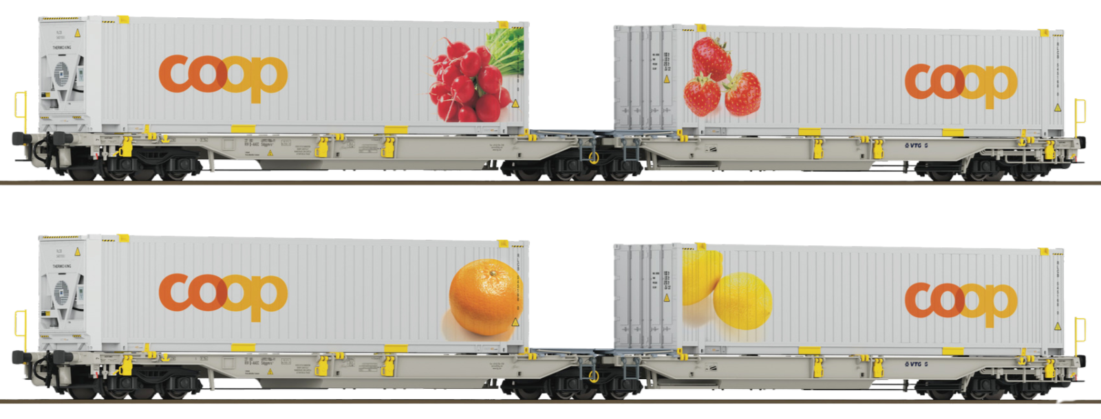 Coffret 2 avec deux wagons-poches articulés à 6 essieux, type Sdggmrs/T2000.