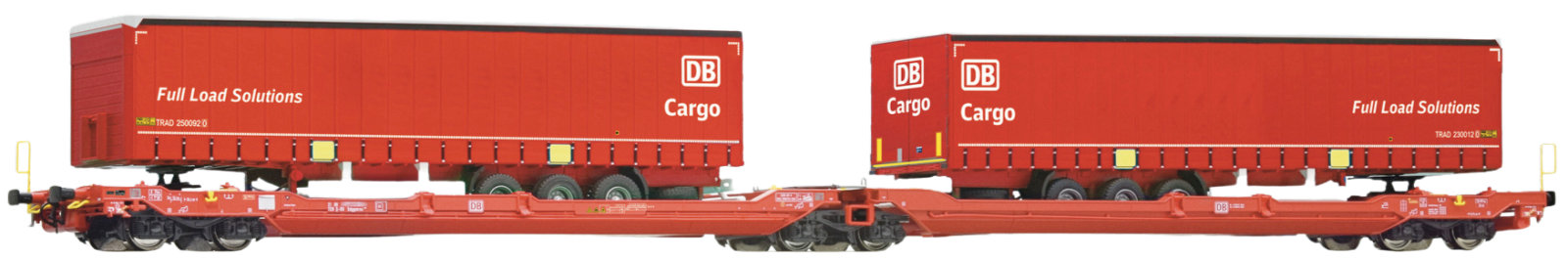 ■ Chargé de deux semi-remorques routiers de la DB Cargo.