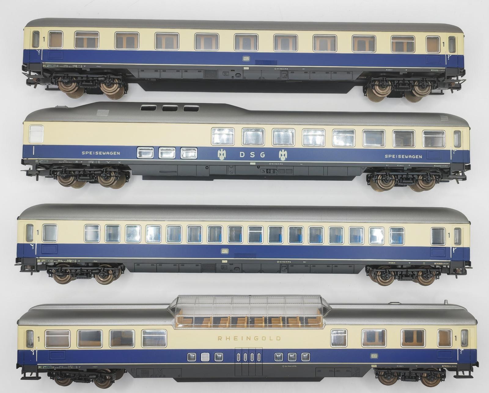 COFFRET 4 VOITURES DB DSG RHEINGOLD BLEU ET CREME - HOBBY LINE