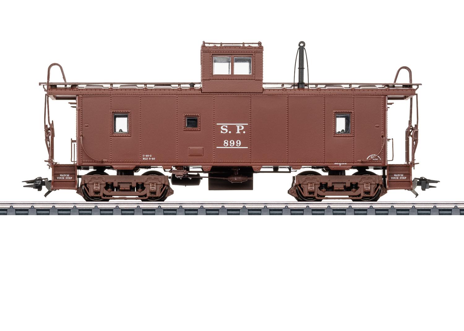 Fourgon de queue, « Caboose », de la Southern Pacific. Version avec cabine centrale sur le toit. Livrée de base marron. État de service vers 1948.