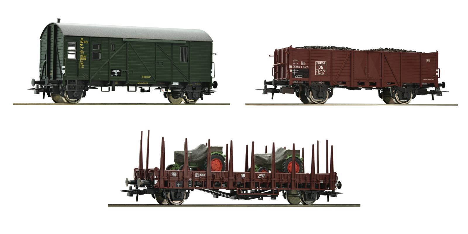 2 COFFRETS DE 3 WAGONS DE MARCHANDISES HOLLENTAL DB