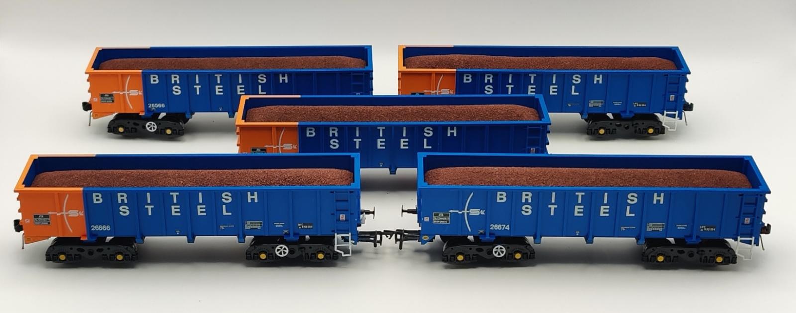 COFFRET DE 5 WAGONS TOMBEREAUX + CHARGEMENTS BRITISH STEEL