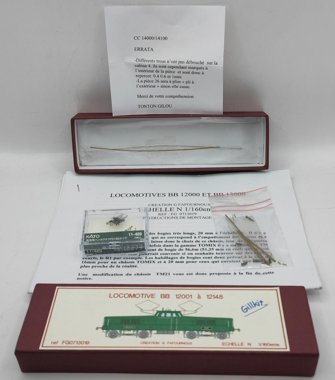 Nos produits > Artisans > GILLKIT > KIT A MONTER LOCOMOTIVE ELECTRIQUE BB 12000 BB 13000KIT A MONTER LOCOMOTIVE ELECTRIQUE BB 12000 BB 13000SANS MOTORISATIONSMOTORISATIONS PAR CHASSIS TOMIXBB-12001 A BB-12148 BB-13001 A BB-13053MarqueGILLKITRéférenceFG0713019CatégorieArtisansEchelleNEpoqueIII - IV3 RailsNon- 13 %159 € 139 € Paiement en plusieurs fois par CB avec Oney Paiement en 3X par carte bancairePour un montant de :139 €Premier apport :48,65 €(Coût du financement : 2,32 € TAEG : 22.52%)Mensualité n°1 :46,33 €Mensualité n°2 :46,34 €Total :141,32 €Paiement en 4X par carte bancairePour un montant de :139 €Premier apport :38,23 €(Coût du financement : 3,48 € TAEG : 22.66%)Mensualité n°1 :34,75 €Mensualité n°2 :34,75 €Mensualité n°3 :34,75 €Total :142,48 €Quantité Ajouter au panier