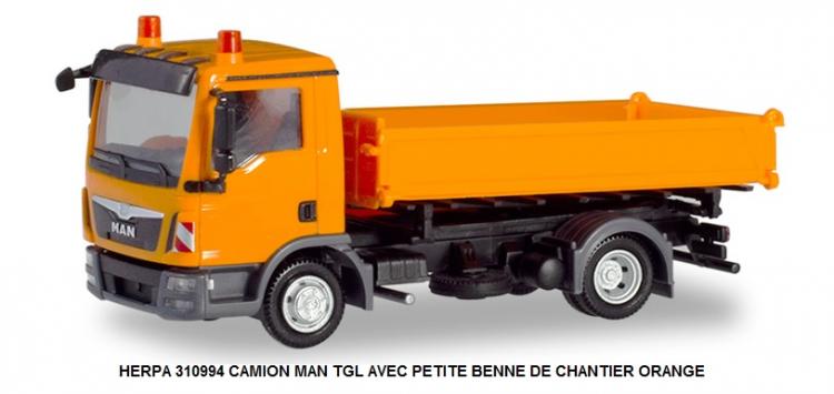 CAMION MAN TGL AVEC PETITE BENNE DE CHANTIER ORANGEMAN F8 CAMION AVEC CHASSE NEIGE ET SALEUSE SERVICE D\'HIVER ORANGE