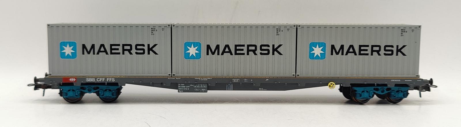 Nos produits > Wagons > HAG > WAGON PORTE CONTENEURS + 3 CONTENEURS MAERSK SBB CFF FFSWAGON PORTE CONTENEURS + 3 CONTENEURS MAERSK SBB CFF FFSMarqueHAGRéférence367CatégorieWagonsEchelleHoPaysSuisse3 RailsNon- 15 %99,90 € 85,90 € Quantité Ajouter au panier