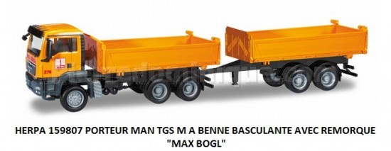 MAN TGS M PORTEUR A BENNE BASCULANTE ET REMORQUE "MAX BOGL"