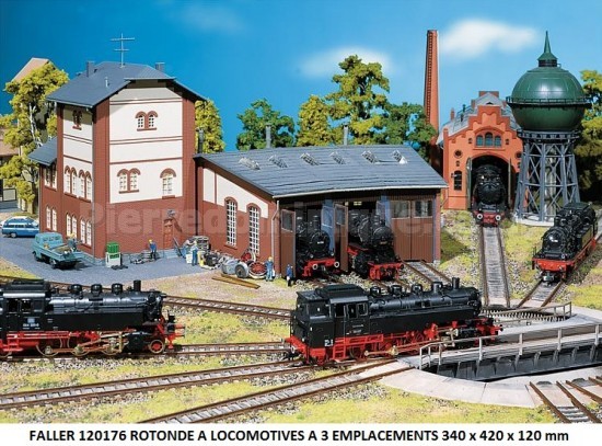 MAQUETTE ROTONDE A LOCOMOTIVES A 3 EMPLACEMENTS 340 x 420 x 120 mm