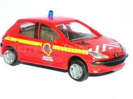 PEUGEOT 206 ROUGE DES POMPIERS DU 37 AVEC GYROPHARE