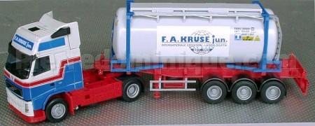 TRACTEUR VOLVO FH 520 AVEC CHASSIS PORTE CONTENEUR 1 20FT TANK TAINER F.A KRUSE