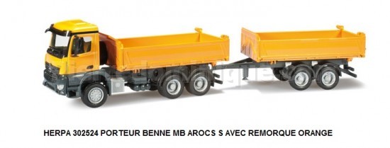 PORTEUR BENNE MB AROCS S AVEC REMORQUE ORANGE