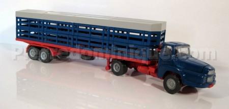 TRACTEUR UNIC AVEC SEMI REMORQUE BETAILLERE BLEU/ ROUGE