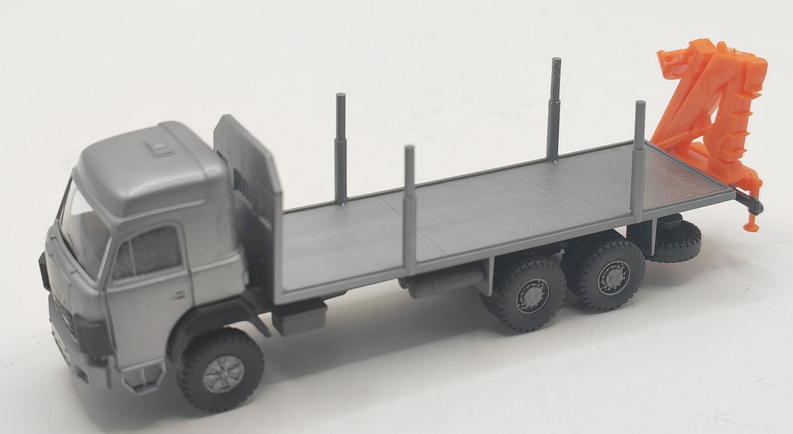 PORTEUR SAURER D 290-330 À 3 ESSIEUX AVEC GRUE DE CHARGEMENT EN POSITION ARRIÈRE POUR CHARGEMENT DE RONDINS
