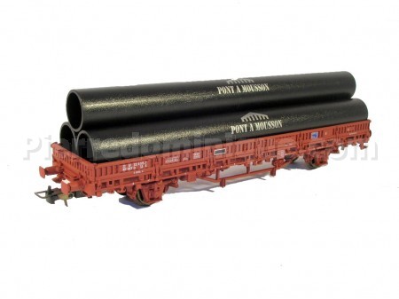 WAGON PLAT SNCF AVEC CHARGEMENT DE TUBES ''PONT A MOUSSON''