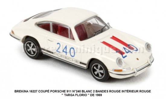 COUPÉ PORSCHE 911 N°240 BLANC 2 BANDES ROUGE INTÉRIEUR ROUGE " TARGA FLORIO " DE 1969