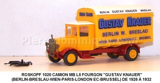CAMION MB L5 FOURGON ''GUSTAV KNAUER'' (BERLIN-BRESLAU-WIEN-PARIS-LONDON EC-BRUSSEL) DE 1926 À 1932