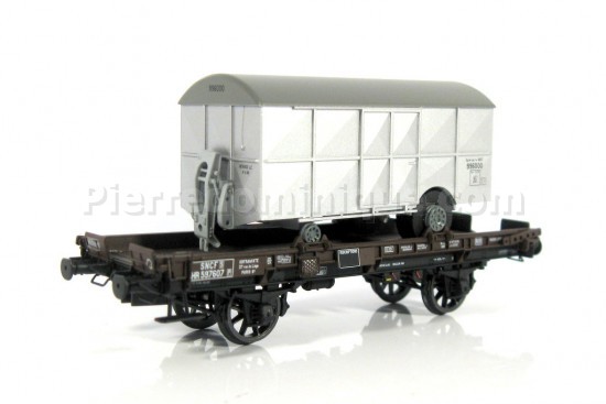 WAGON PLAT UFR SNCF + REMORQUE PAVESI