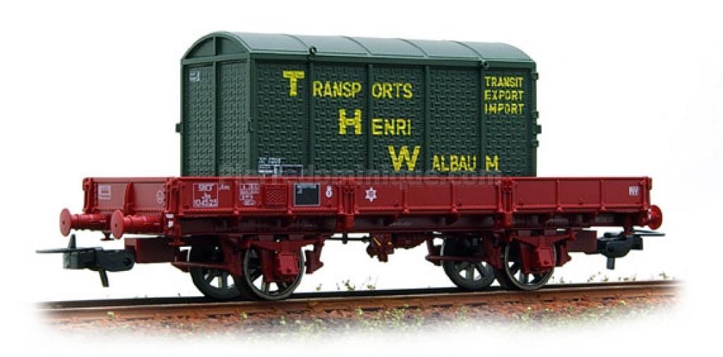 *PROMOS* - PLAT RIDELLES ROUGE UIC SNCF EP. III CONTAINEUR DEMEN. TRANSPORTS WALBAUM VERT