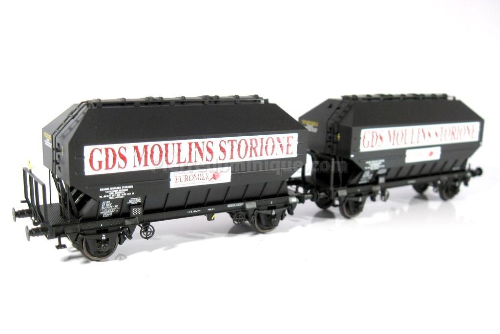 *PROMOS* - COFFRET DE 2 WAGONS CEREALIERS GDS MOULINS STORIONE SNCF