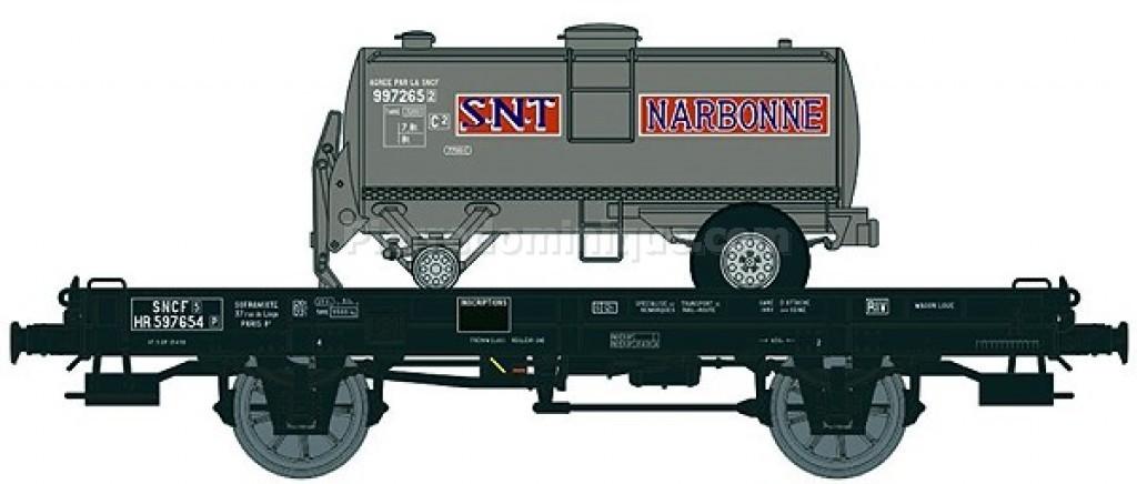 Wagon Mono-porteur UFR avec remorque citerne SNT NARBONNE