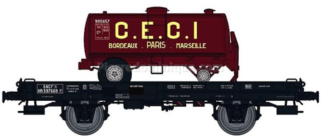 Wagon Mono-porteur UFR avec remorque citerne C.E.C.I , Paris, Marseille