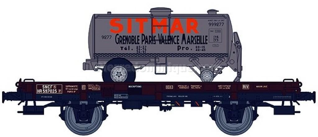 Wagon Mono-porteur UFR avec remorque citerne SITMAR Grenoble, Paris, Valence, Marseille